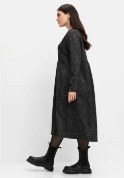 Jerseykleid in schmaler Linie von sheego by Joe Browns. Durch den überlappenden V-Ausschnitt entsteht eine feminine Wickeloptik, die in einer seitlichen Raffung auf Taillenhöhe endet. Auch der asymmetrische Saumverlauf im vorderen Rockteil gibt dem Schnitt Raffinesse. Besonders dekorativ wirkt der Print, der sich über das ganze Kleid zieht und in warmen Tönen leuchtet.