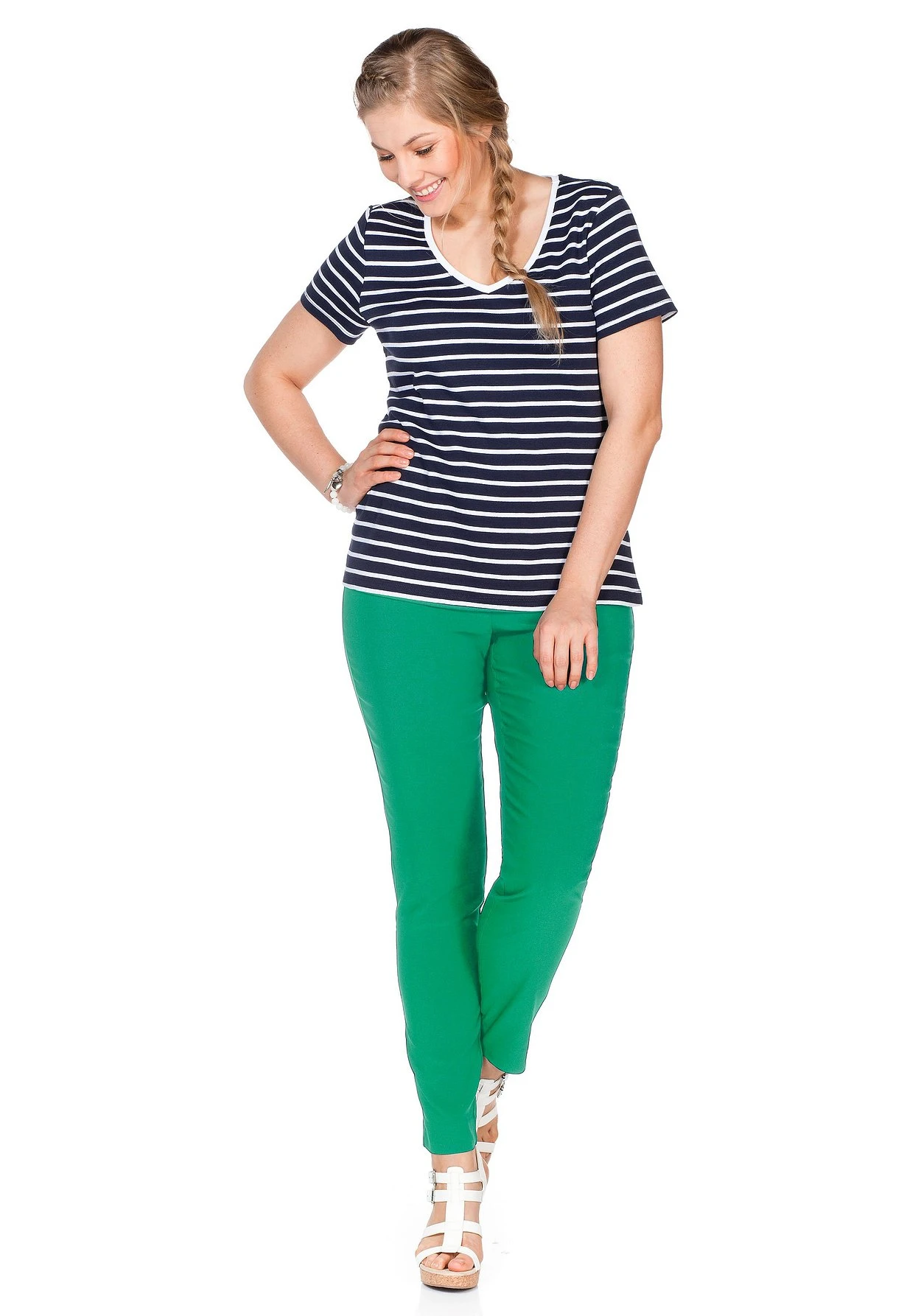 Schmale Hose in Bengalin-Qualität. Der schlichte, klassische Look macht sie zum gepflegten Begleiter durch den Alltag. Sie ist mit schmalem Bund und ohne Taschen gearbeitet. So sitzt sie optimal und trägt nicht auf.