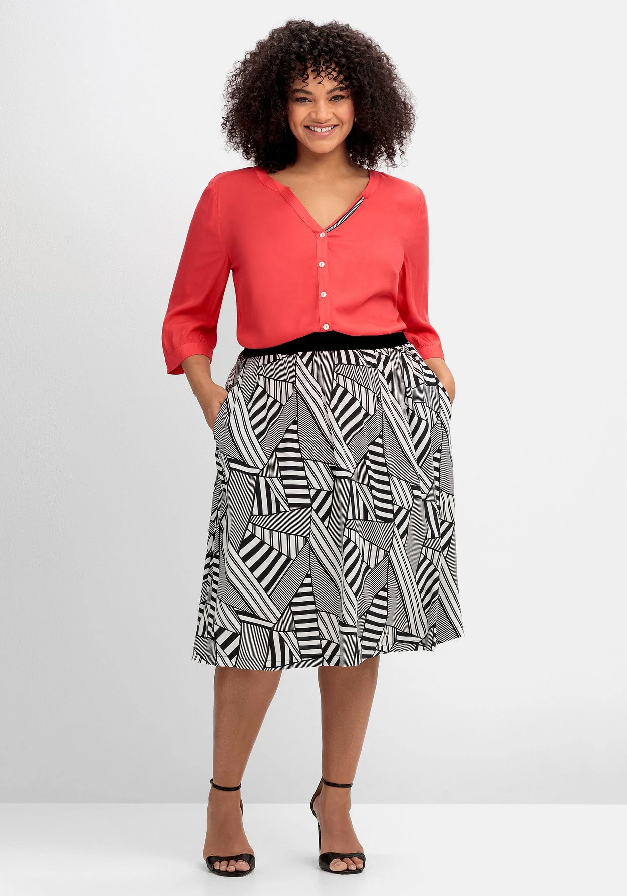 Die Qualität aus reiner Viskose fällt weich fließend. Für die Herstellung von LENZING™ ECOVERO™ Viskose werden ausschließlich zertifizierte Holzressourcen verwendet. Auch der gesamte Produktionsprozess entspricht streng den Richtlinien des EU Öko-Labels. LENZING™ und ECOVERO™ sind Marken der Lenzing AG. sheego cares!