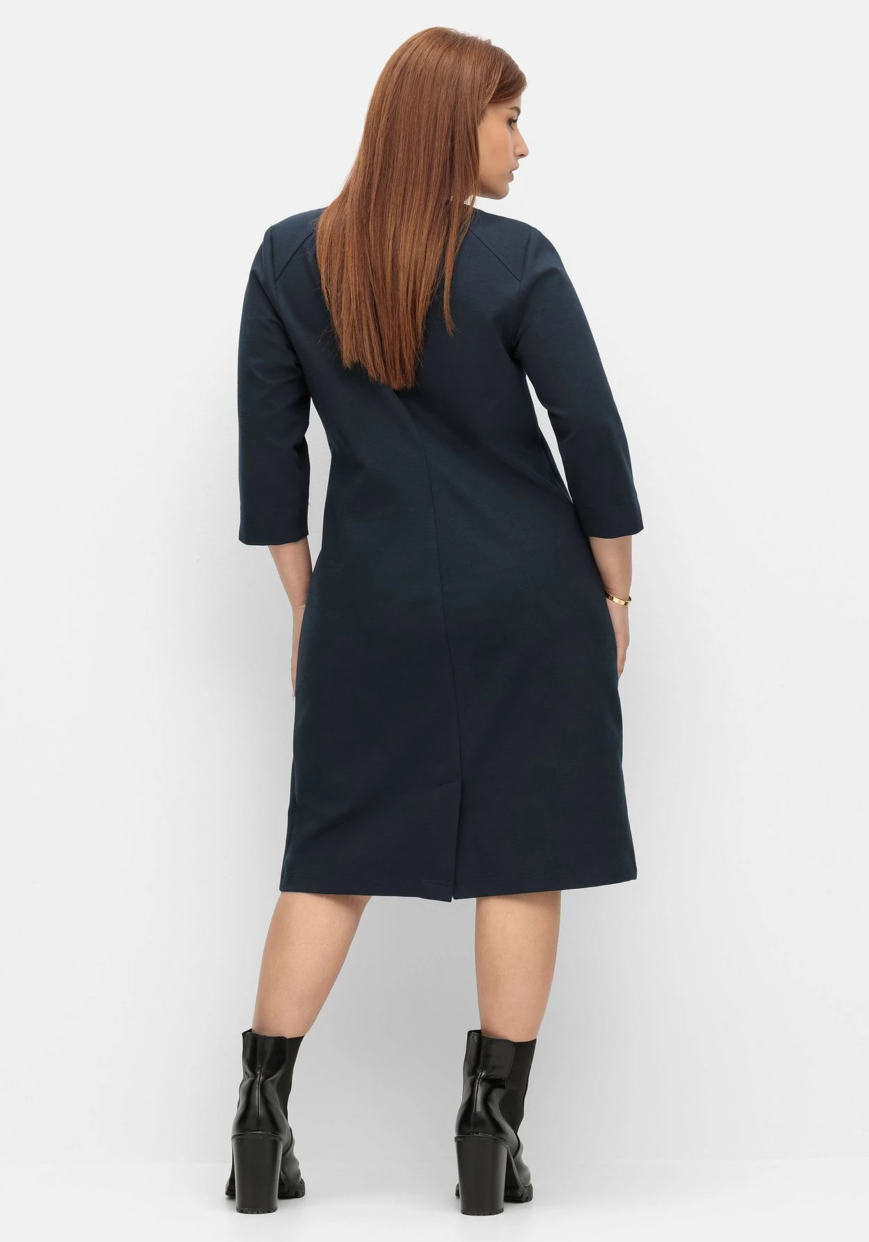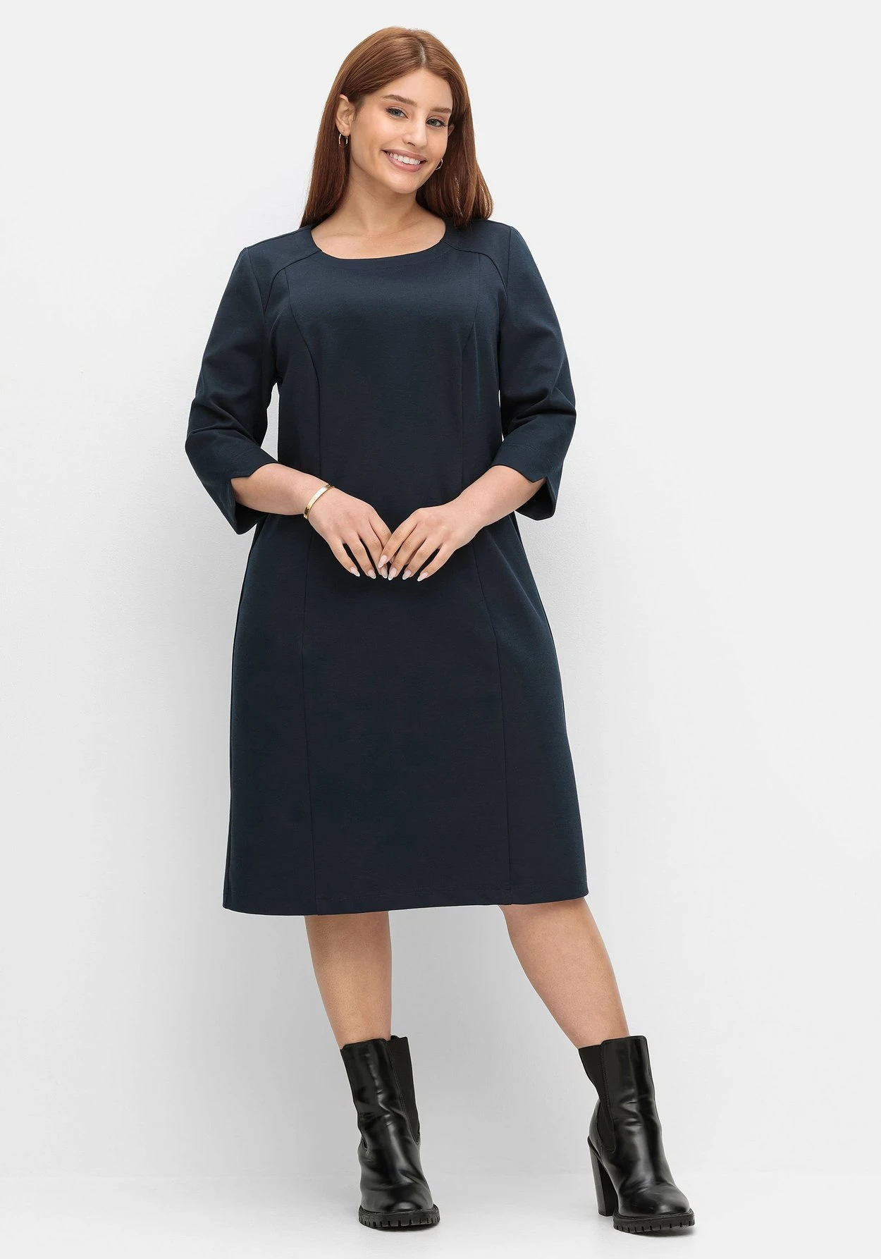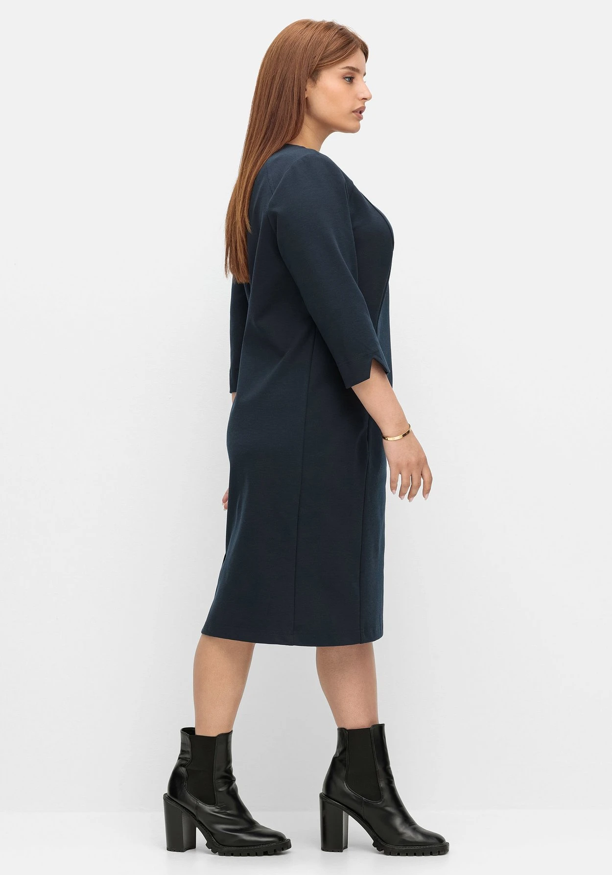 Etuikleid in Petite-Passform. Das figurbetonte Kleid überzeugt mit klassischem Schnitt und 3/4-langen Ärmeln. In die Naht vorn sind Eingrifftaschen mit dekorativem Reißverschluss eingearbeitet, im Nacken überrascht ein Schlitz mit Knopf. Geschickt gesetzte Teilungsnähte formen eine schmeichelnde Silhouette.