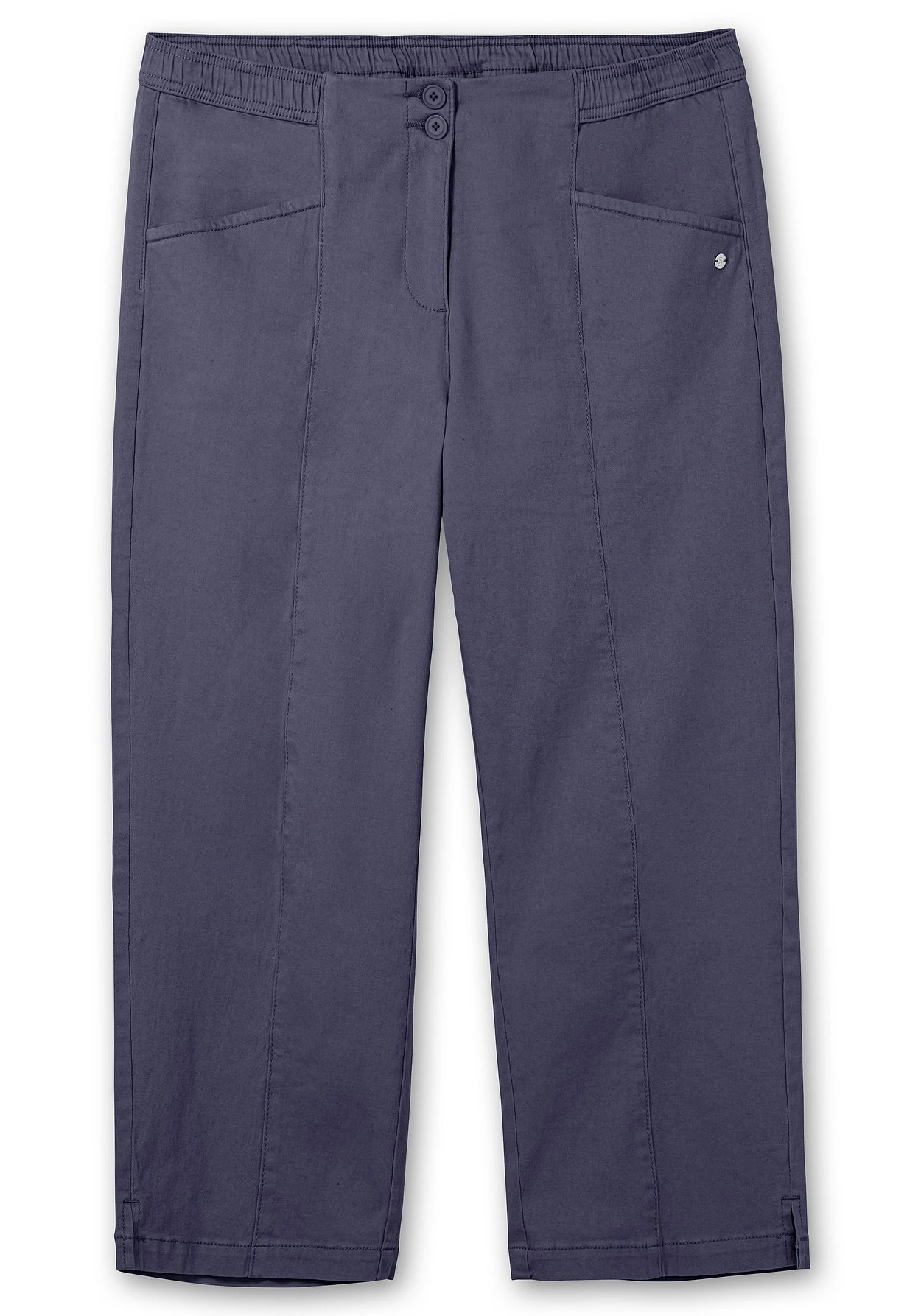 Twillhose PIA in Curvy-Schnitt PIA, ideal für die Figur mit sehr kräftigen Oberschenkeln. Die Hose besitzt ein gerades Bein in knöchelbedeckender Länge. Für besonderen Tragekomfort sorgt der Gummizug am Bund. Zwei Knöpfe und der Reißverschluss geben dem Look eine gepflegte Note. Raffiniert gesetzte Taschen und eine streckende Biese vorn unterstreichen den modernen Auftritt.