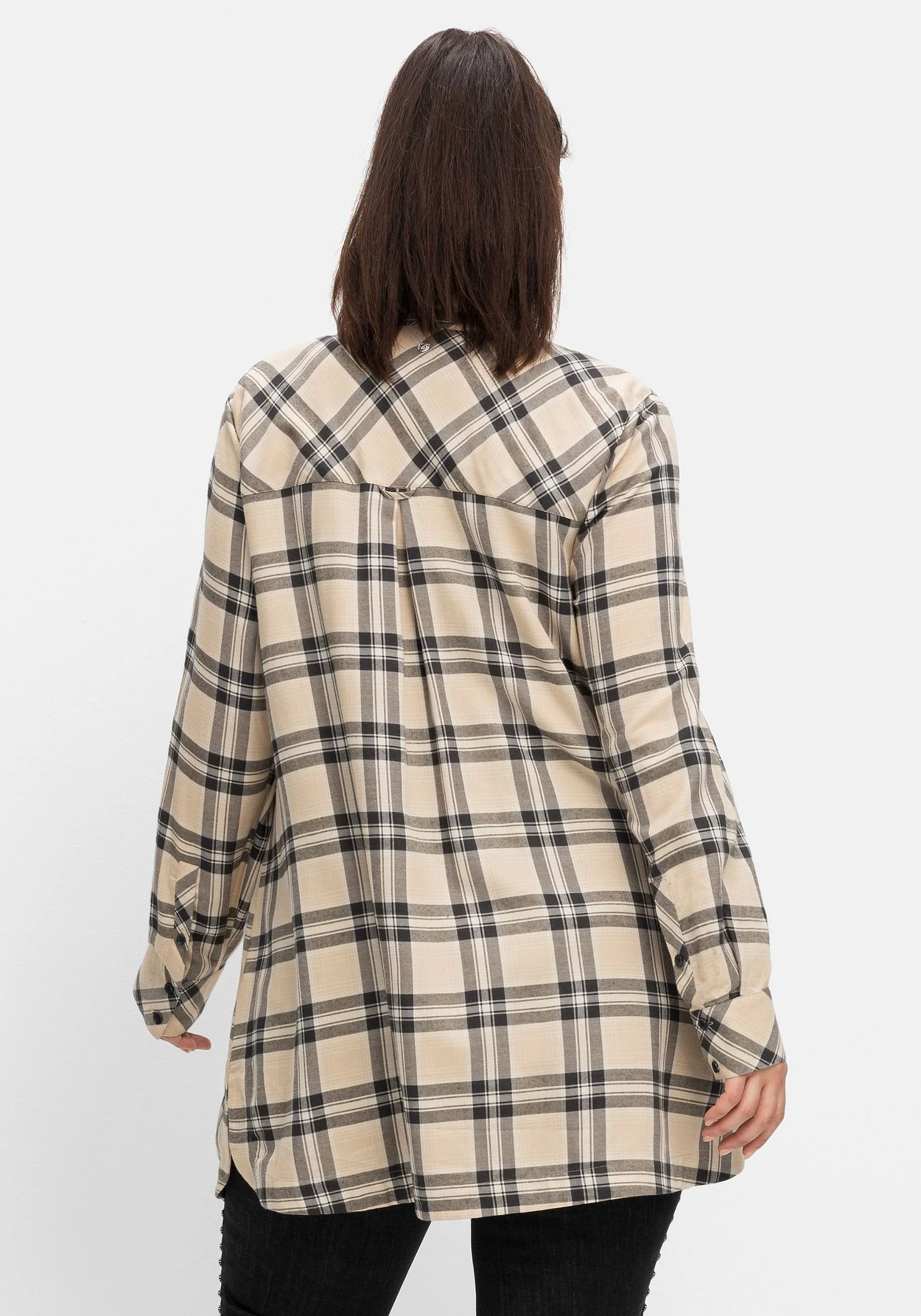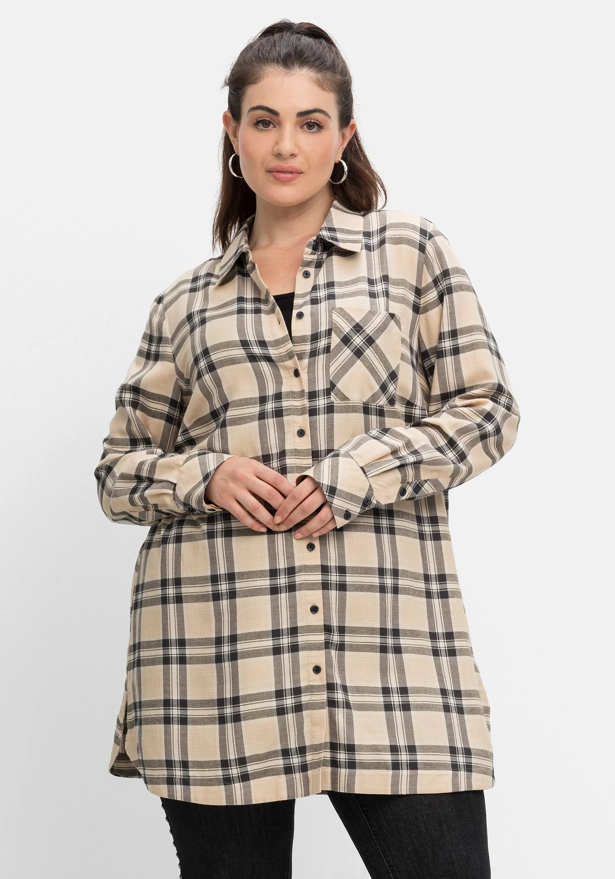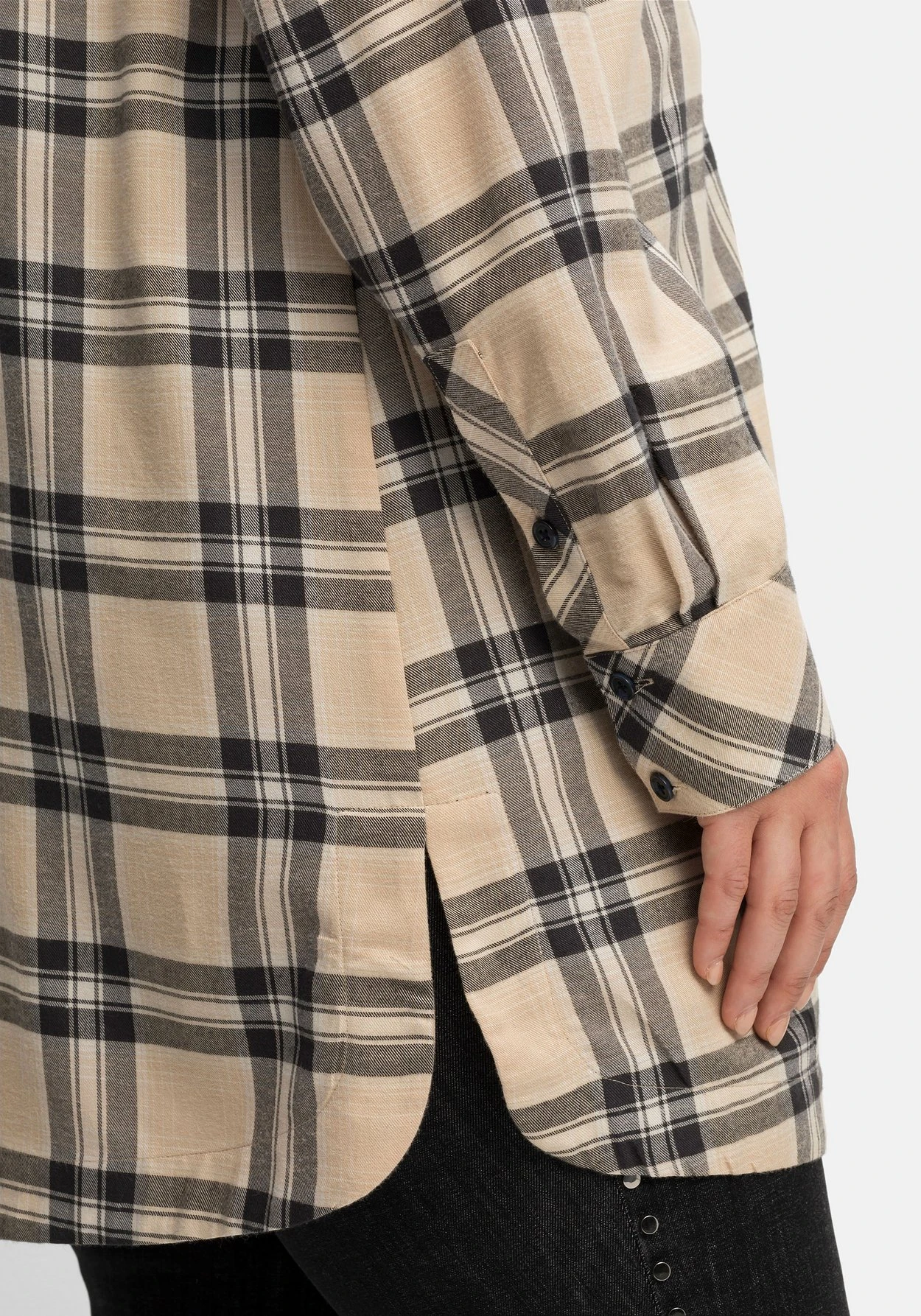 Longbluse im Karomuster. Kragen, Knopfleiste und Brusttasche sorgen für den klassischen Hemdblusen-Look. Hinten ist die Bluse mit Passe und Kellerfalte gearbeitet, die Ärmel enden mit Knopfmanschetten. Seitlich eingefasste Schlitze garantieren optimale Bewegungsfreiheit und Tragekomfort.