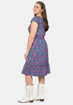 Das Kleid ist figurumspielend geschnitten und besitzt eine kniefreie Länge.