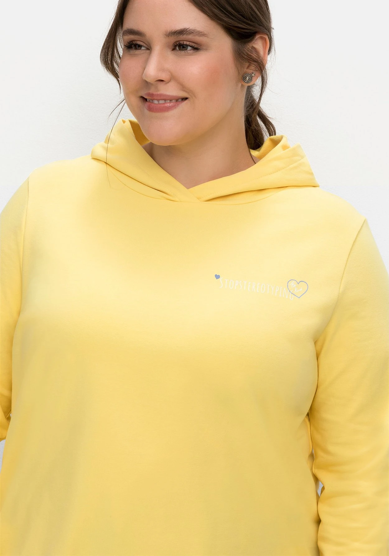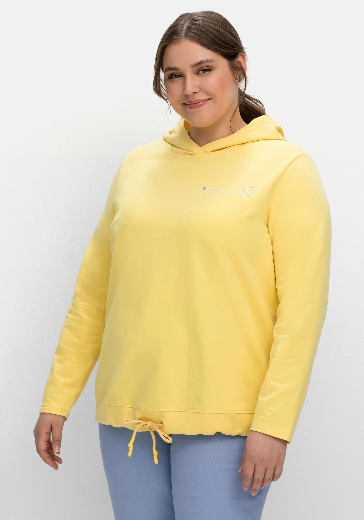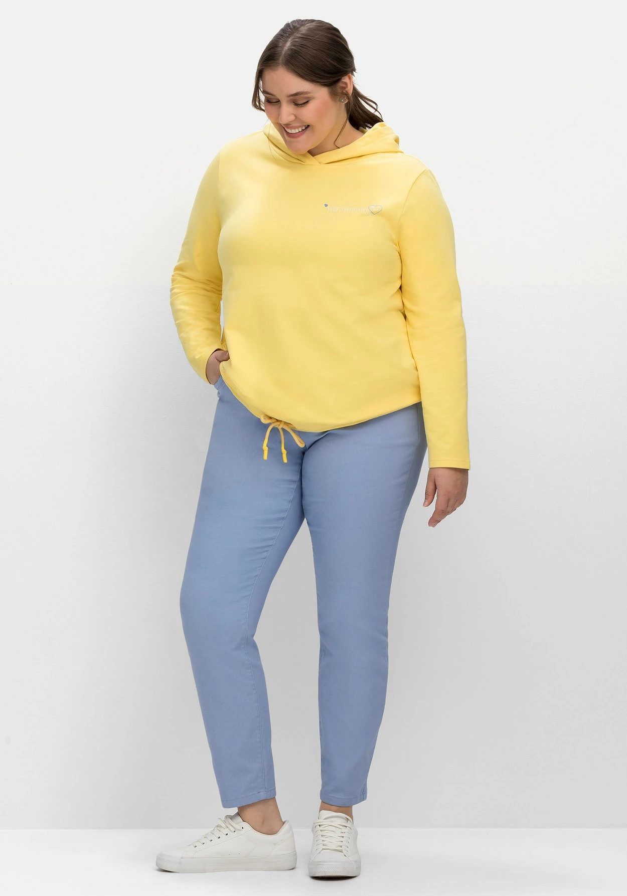 Die Sweatware besteht aus elastischer Baumwolle. Mit deinem Kauf unterstützt du die Arbeit von „Cotton made in Africa“. Die Initiative leistet Hilfe zur Selbsthilfe durch Handel und will so die Lebensbedingungen afrikanischer Kleinbauern verbessern. sheego cares!