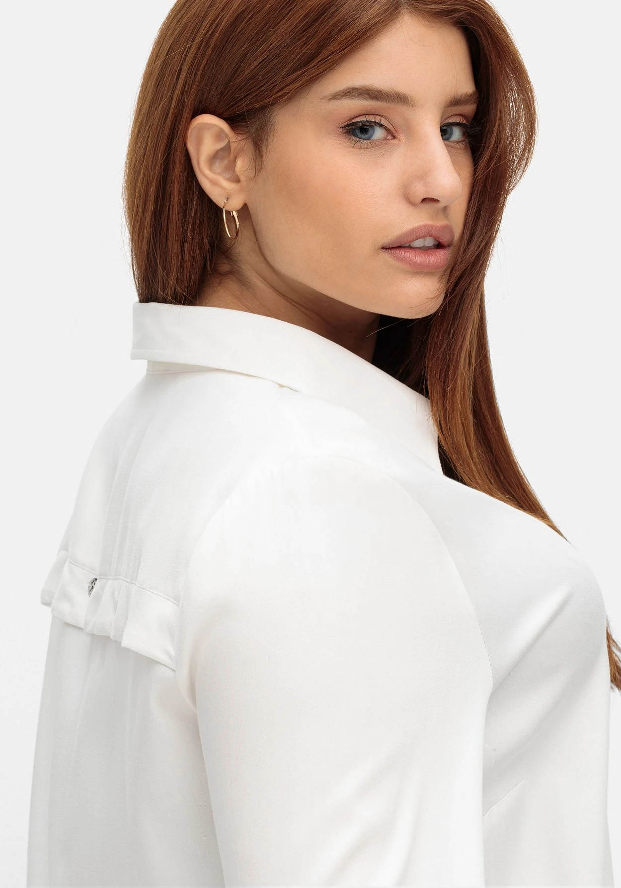 Die elastische Viskosequalität fließt schön und trägt sich wunderbar entspannt. Wer es absolut blickdicht mag, kann die leicht transparente Bluse mit einem Unterziehtop kombinieren. Für die Herstellung von LENZING™ ECOVERO™ Viskose werden ausschließlich zertifizierte, nachwachsende Holzressourcen verwendet. Auch der gesamte Produktionsprozess entspricht streng den Richtlinien des EU Öko-Labels. LENZING™ und ECOVERO™ sind Marken der Lenzing AG. sheego cares!