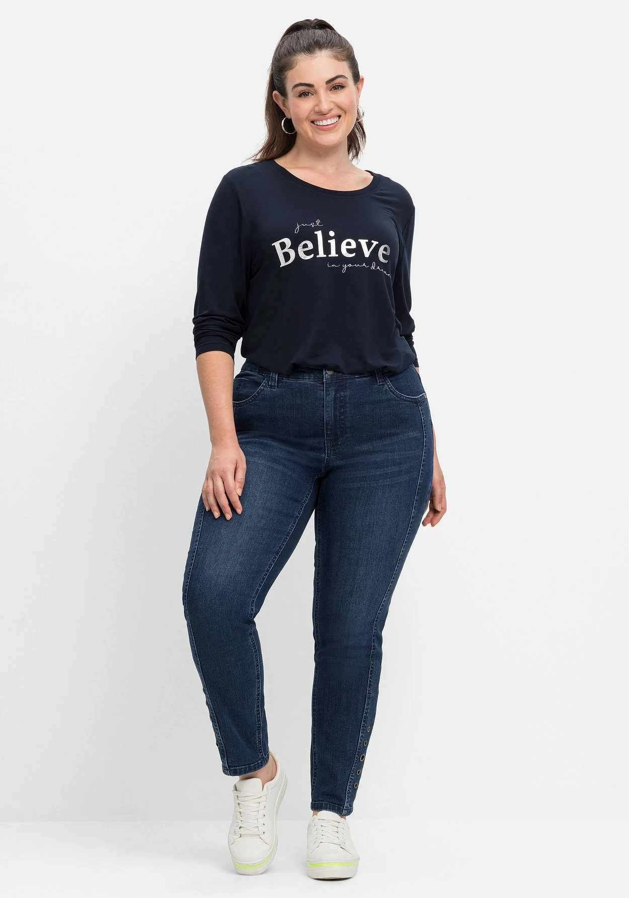 Die elastische Denim-Qualität trägt sich durch den hohen Baumwollanteil sehr angenehm. Außerdem unterstützt du mit dem Kauf dieses Produkts die Arbeit von „Cotton made in Africa“. Die Initiative leistet Hilfe zur Selbsthilfe durch Handel und will so die Lebensbedingungen afrikanischer Kleinbauern nachhaltig verbessern. sheego cares!