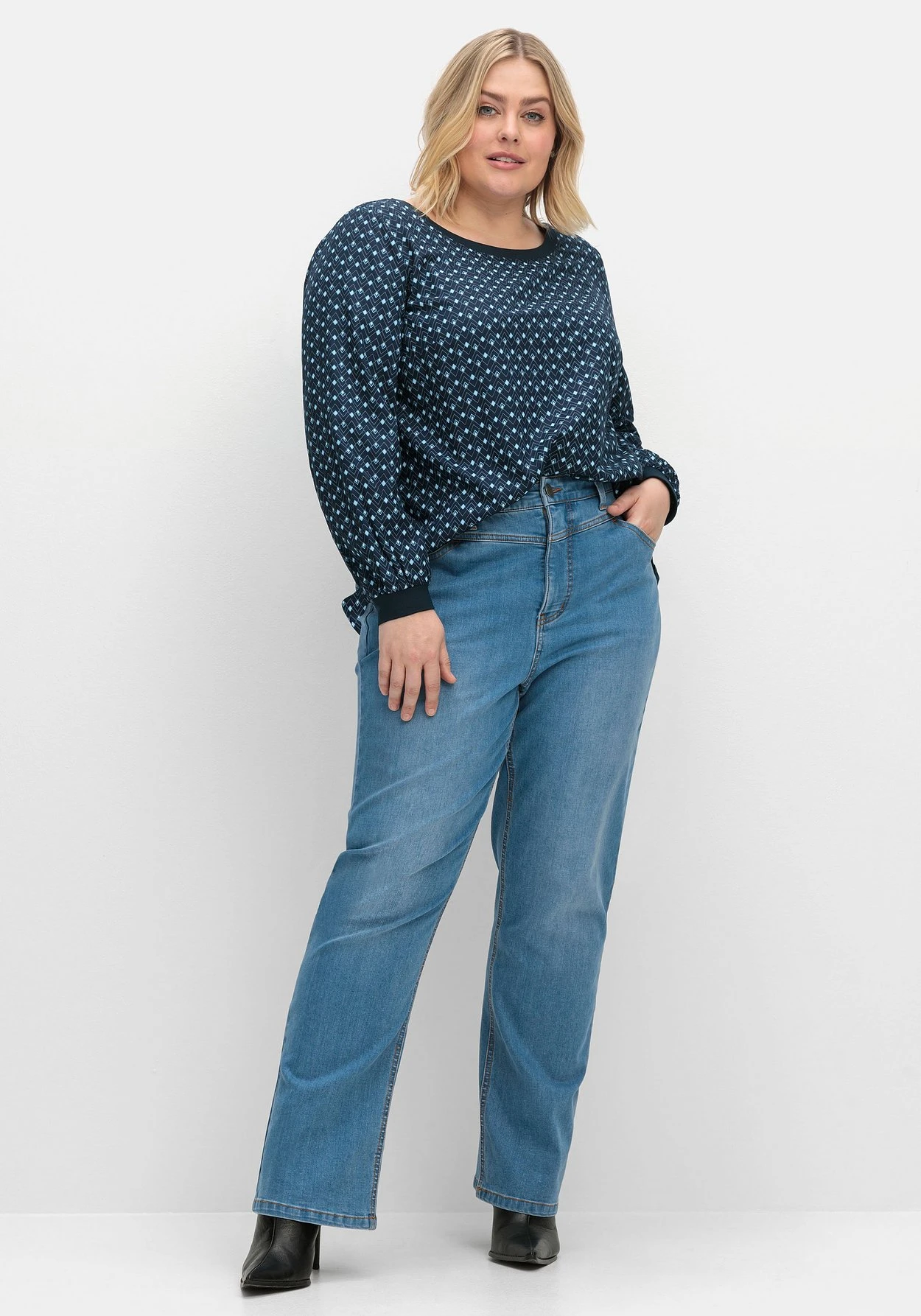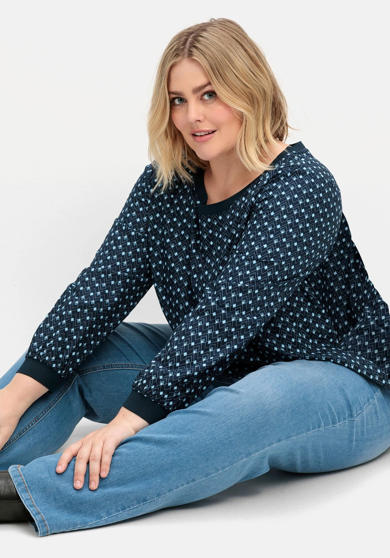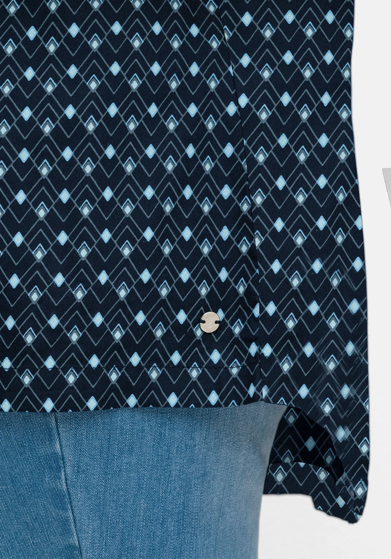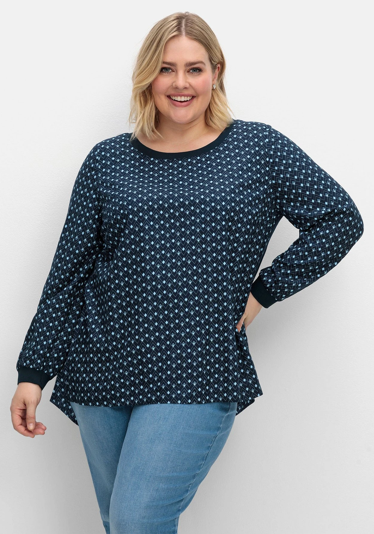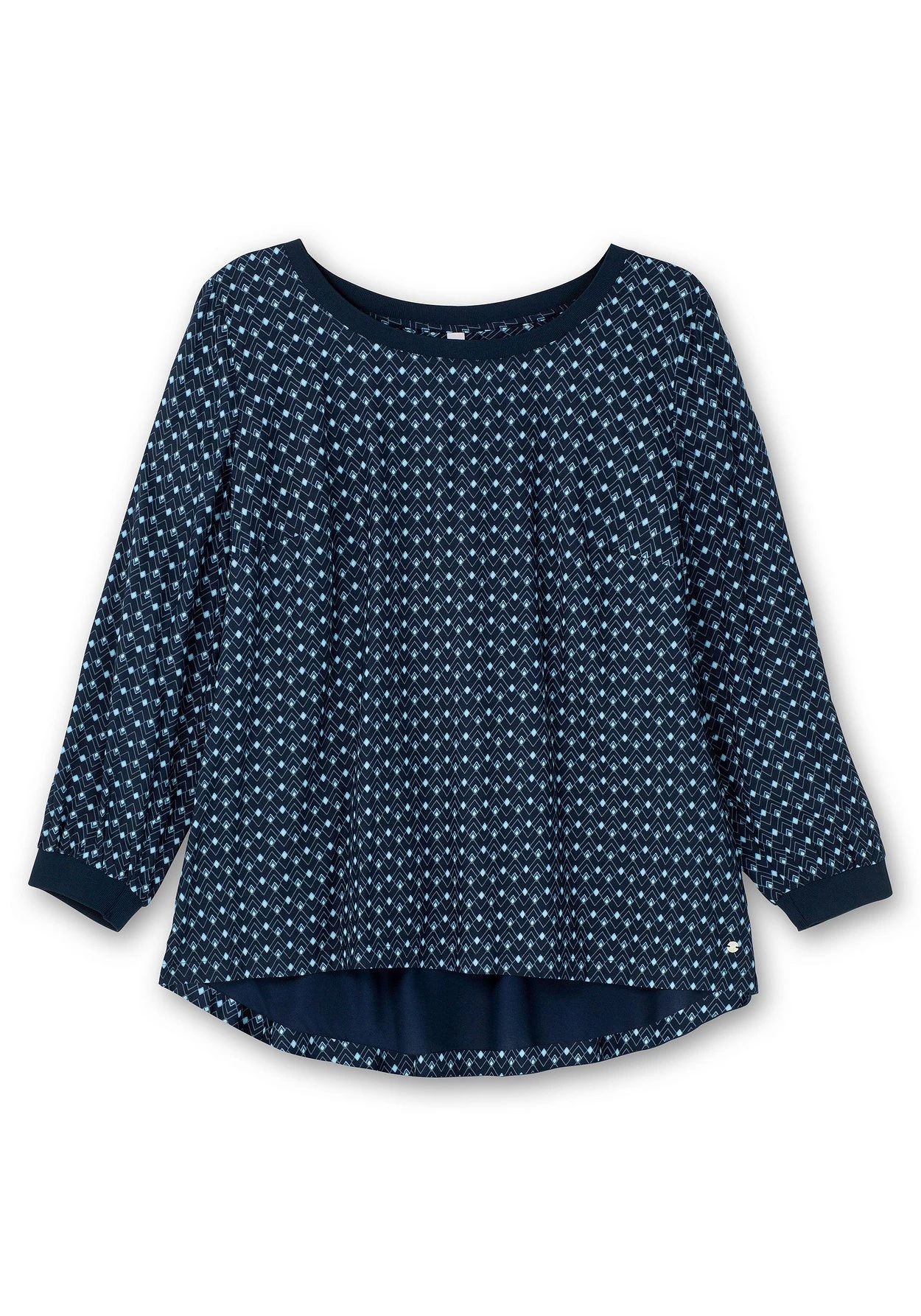 Tunika mit grafischem Minimal-Alloverprint. Hinten sorgen Quetschfalten für einen besonders luftigen Fall, der verlängerte Schnitt schmeichelt der Po-Partie. Unifarbene Rippbundabschlüsse am Rundhalsausschnitt und am Ärmelsaum runden den Look sportiv ab.