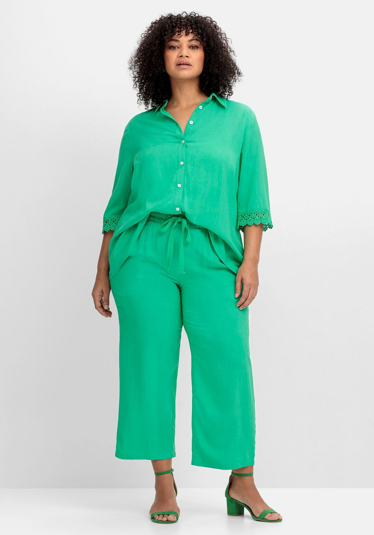 Die Qualität aus reiner LENZING™ ECOVERO™ Viskose fällt weich fließend. Für die Herstellung von LENZING™ ECOVERO™ Viskose werden ausschließlich zertifizierte, nachhaltige Holzressourcen verwendet. Auch der gesamte Produktionsprozess entspricht streng den Richtlinien des EU Öko-Labels. LENZING™ und ECOVERO™ sind Marken der Lenzing AG. sheego cares!
