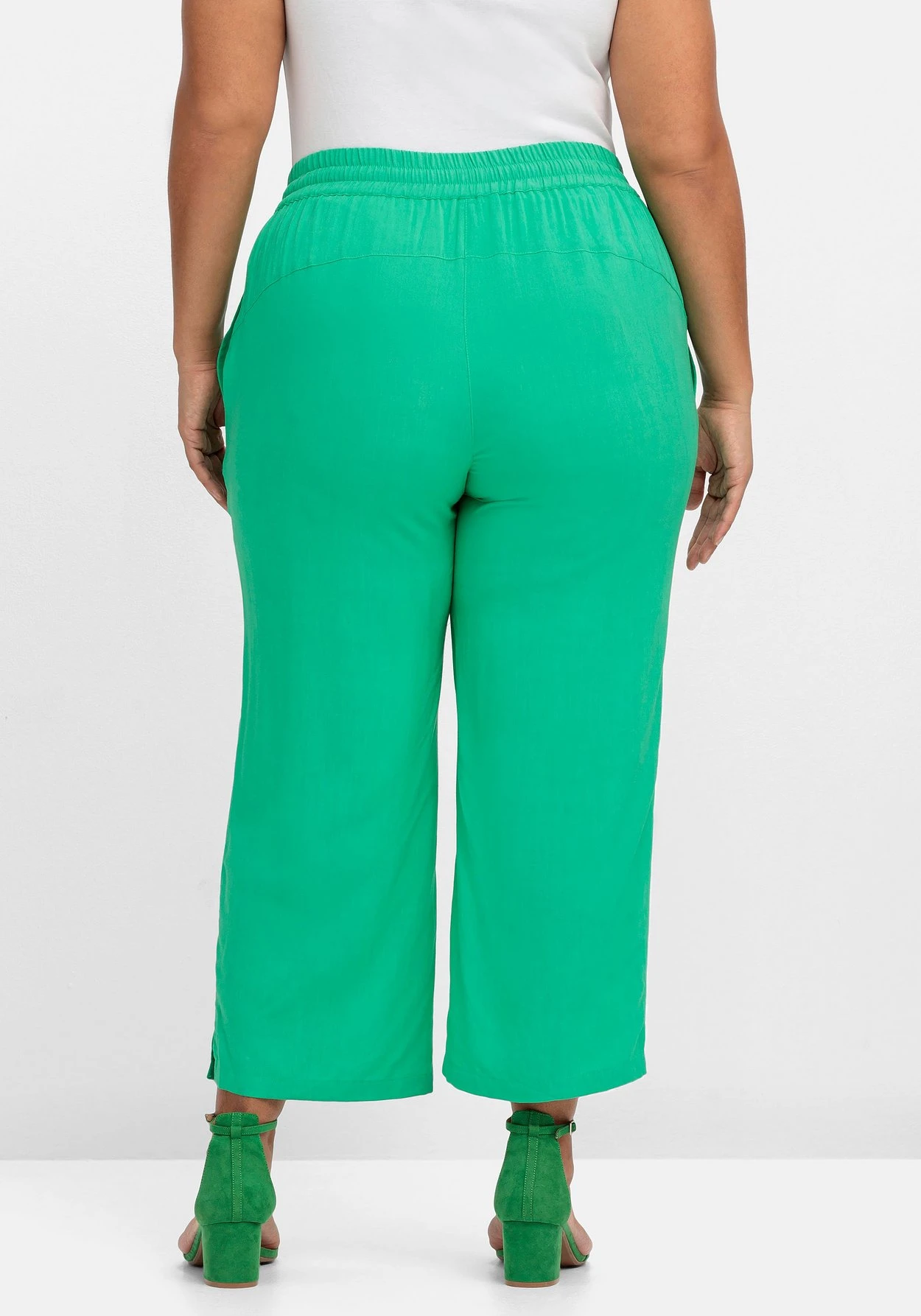 Die weite Beinform ist mit seitlichen Schlitzen gearbeitet. Die knöchelfreie Länge macht die Hose zum idealen Sommerbegleiter.